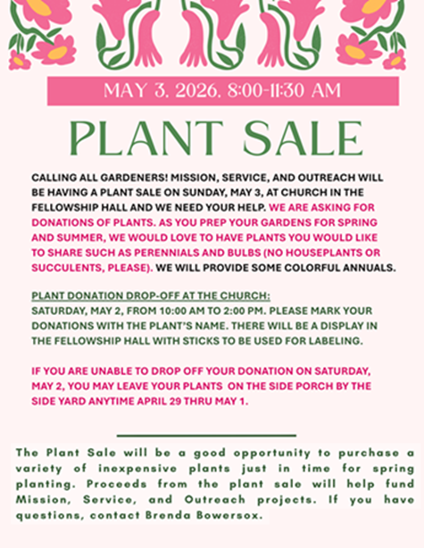Plants for sale will include hanging baskets, pots and 6-packs. There will also be plants donated by members (bulbs and perennials). Come shop for you or maybe even find the perfect plant give as a Mother’s Day gift!